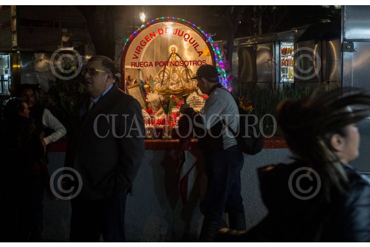 CIUDAD DE MÉXICO, 11FEBRERO2018.- Transeúntes pasan frente a la "Virgen de Juquila" a las afueras de la estación del metro Barranca del Muerto. FOTO: TERCERO DÍAZ / CUARTOSCURO.COM