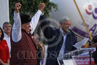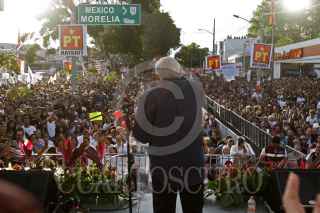 GUADALAJARA, JALISCO, 11FEBRERO2018.- Andrés Manuel López Obrador AMLO pre candidato a la Presidencia de la Republica por el Partido MORENA, cerro su pre campaña en la inmediaciones de la Glorieta de los Niños Héroes, lugar al que acudieron miles de simpatizantes a su movimiento Regeneración Nacional. FOTO: FERNANDO CARRANZA GARCIA / CUARTOSCURO.COM
