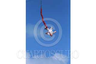 CANCÚN, QUINTANA ROO, 12FEBRERO2018.- Un turista realiza un salto DEL BONJI disfrutando de sus vacaciones en el Caribe. FOTO: ELIZABETH RUIZ /CUARTOSCURO.COM