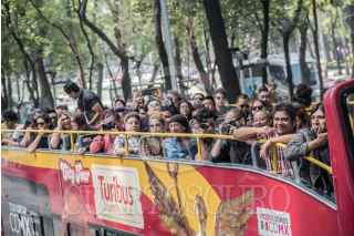 CIUDAD DE MÉXICO, 13FEBRERO2018.- Se llevo a cabo la presentación de "Turirock" la cual será una nueva alternativa en el concepto turístico de Turibús, y consiste en llevar a los fanáticos a los conciertos que se realizen en la Carpa Astros, teniendo como punto de partida Reforma 222. FOTO: MARIO JASSO /CUARTOSCURO.COM