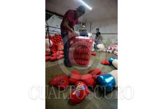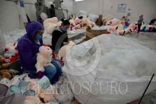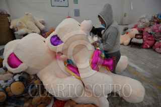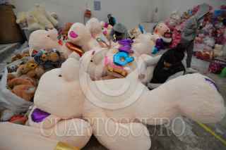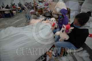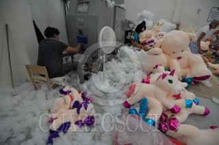 XONACATLÁN, ESTADO DE MÉXICO, 13FEBRERO2018.- Mujeres, en su mayoría madres solteras, elaboran peluches y regalos para enamorados previo al 14 de febrero, Día del Amor y la Amistad. Nohemí Bustamante y su familia trabajan en su negocio Andy Toys, con meses de anticipación la producción de osos de peluche, y de esta forma anticipan los regalos de los enamorados. FOTO: ARTEMIO GUERRA BAZ /CUARTOSCURO.COM