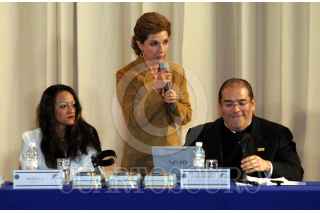 MEXICO, D.F. 17ENERO2005.- Marta Sahagún, primera dama, sostuvo una reunión con integrantes de Alcohólicos Anónimos, en el Museo de Antropología. En la grafica, la acompañan Angélica L. y Francisco Cisneros, funcionario de la presidencia. FOTO: Moisés Pablo/CUARTOSCURO.COM