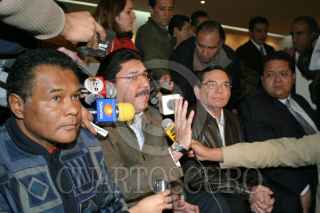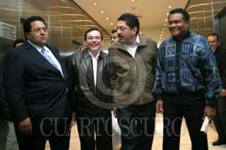 MEXICO, D.F. 22ENERO2004.- Ulices Ruíz, gobernador de Oaxaca y Manuel Andrade Díaz, gobernador de Tabasco a su llegada a un conocido hotel de la ciudad de México, donde sostuvieron una reunión con sus homólogos de Quintana Roo y Campeche. FOTO: Nelly Salas/CUARTOSCURO.COM