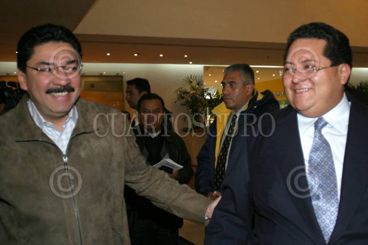 MEXICO, D.F. 22ENERO2004.- Ulices Ruíz, gobernador de Oaxaca y Manuel Andrade Díaz, gobernador de Tabasco a su llegada a un conocido hotel de la ciudad de México, donde sostuvieron una reunión con sus homólogos de Quintana Roo y Campeche. FOTO: Nelly Salas/CUARTOSCURO.COM