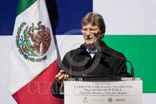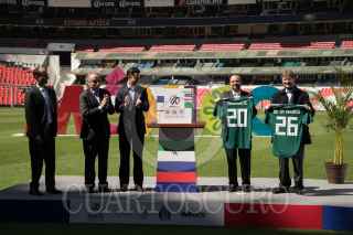 CIUDAD DE MÉXICO, 16FEBRERO2018.- Enrique de la Madrid, secretario de Turismo, Decio de María, presidente de la Federación Mexicana de Fútbol Asociación, Alfonso Navarrete Prida, secretario de Gobernación, Yon de Luisa, ejecutivo de Televisa y director de la candidatura mundialista en México 2026 Y Guillermo Cantú, secretario general de la Federación Mexicana, durante la presentación de la "Candidatura Conjunta para ser sede de la Copa del Mundo FIFA 2026, Canadá, México y Estados Unidos. FOTO: ADOLFO VLADIMIR /CUARTOSCURO.COM