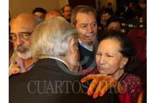 CIUDAD DE MÉXICO, 18FEBRERO2018.- Ifigenia Martinez y Porfirio Muñoz Ledo felicitan a Andrés Manuel Lopez Obrador al termino del registro como candidato a presidente de la república por parte de Movimiento de Regeneración Nacional. FOTO: SAÚL LÓPEZ /CUARTOSCURO.COM