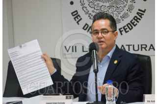 CIUDAD DE MÉXICO, 19FEBRERO2018.- Leonel Luna y Raúl Flores, del grupo parlamentario del PRD en conferencia de prensa hablaron sobre las acusaciones de malversacion de los recursos para la Reconstruccion de la Ciudad. FOTO: VICTORIA VALTIERRA /CUARTOSCURO.COM