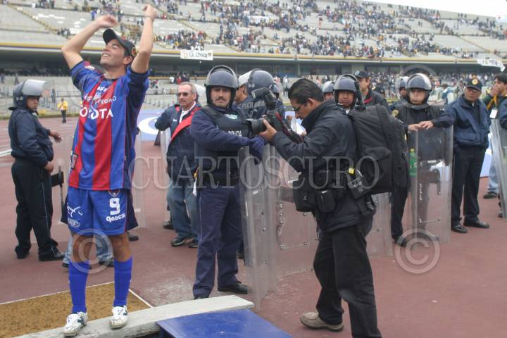 MEXICO, D.F. 23ENERO2005.- Federico Vilar, portero de Atlante detuvo un balón dirigido a Diego Alonso, delantero de Pumas, en el partido de la jornada 2 del torneo de clausura 2005 donde Atlante venció un gol por cero a Pumas de la UNAM, en el estadio de Ciudad Universitaria. FOTO: Iván Stephens/CUARTOSCURO.COM