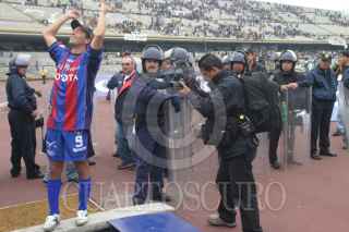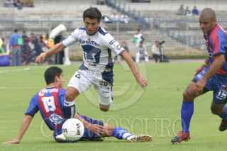 MEXICO, D.F. 23ENERO2005.- Federico Vilar, portero de Atlante detuvo un balón dirigido a Diego Alonso, delantero de Pumas, en el partido de la jornada 2 del torneo de clausura 2005 donde Atlante venció un gol por cero a Pumas de la UNAM, en el estadio de Ciudad Universitaria. FOTO: Iván Stephens/CUARTOSCURO.COM