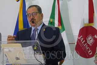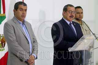 GUADALAJARA, JALISCO, 20FEBRERO2018.- Raúl Sánchez Jiménez Fiscal General del Estado, Fausto Mancilla Martínez Fiscal Regional y Raúl Alejandro Velásquez Ruiz Comisionado de Seguridad, ofrecieron una conferencia de prensa en las instalaciones de la Fiscalía General de esta entidad, para dar a conocer los detalles de los avances en las investigaciones que se llevan a cabo en torno a las personas de origen Italiano desaparecidas el pasado 31 de Enero en el municipio de Tecalitlán. FOTO: FERNANDO CARRANZA GARCIA / CUARTOSCURO.COM