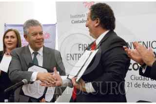 CIUDAD DE MÉXICO, 21FEBRERO2018.- David Penchyna director del Infonavit y José Besil, presidente del Instituto Mexicano de Contadores Públicos, formaron un convenio de colaboración entre ambas instituciones, esto se llevo acabo en el Club de Industriales. FOTO: VICTORIA VALTIERRA /CUARTOSCURO.COM