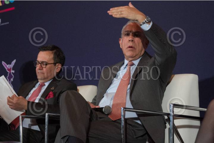 CIUDAD DE MÉXICO, 21FEBRERO2018.- Alejandro Delgado Ayala, presidente del Instituto Nacional del Emprendedor (Inadem); Ildefonso Guajardo, secretario de Economía, y José Ángel Gurría, secretario general de la Organización para la Cooperación y Desarrollo Económico (OCDE), durante el lanzamiento de la publicación de la OCDE: "Indicadores clave sobre Financiamiento a Pymes y Emprendedores", durante la tercera conferencia ministerial Global de Pymes de la OCDE. FOTO: MOISÉS PABLO /CUARTOSCURO.COM