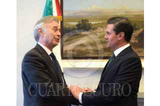 CIUDAD DE MÉXICO, 21FEBRERO2018.- En la Residencia Oficial de Los Pinos, el Presidente Enrique Peña Nieto se reunió con el Director General de Grupo Safran, Phillippe Petitcolin. El empresario francés se encuentra en nuestro país para inaugurar la 11a. planta industrial de Safran en México, ubicada en el Parque Aeroespacial Querétaro. FOTO: PRESIDENCIA /CUARTOSCURO.COM