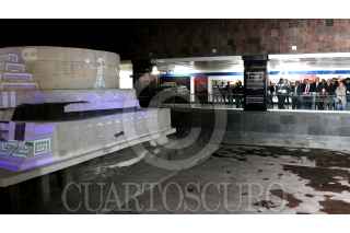 CIUDAD DE MÉXICO, 21FEBRERO2018.- El Sistema de Transporte Colectivo (STC) presentó la rehabilitación integral del monumento a Ehécatl, ubicado en la Estación Pino Suárez, proceso de restauración que realizó de forma coordinada con el Instituto Nacional de Antropología e Historia (INAH). El director general del Metro, Jorge Gaviño Ambriz, resaltó la importancia del adoratorio, ya que representa una conjunción entre espacio público e histórico, por lo que los trabajos en la zona eran tarea obligada. FOTO: CUARTOSCURO.COM