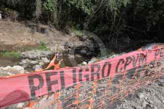 OCOYOACAC, ESTADO DE MÉXICO, 21FEBRERO2018.- Debido a las obras del Tren Interurbano México-Toluca ejidatarios de Acazulco exigen se respete el caudal de Río Hondito, llaman a las autoridades encargadas se diseñe un plan para no seguir afectando los mantos freaticos. FOTO: ARTEMIO GUERRA BAZ /CUARTOSCURO.COM