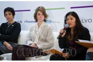 CIUDAD DE MÉXICO, 22FEBRERO2018.- Marta Ferreyra, Belén Sanz y Marcelina Bautista, encabezaron el inicio de la campaña por la defensa de los derehcos de las Trabajadoras Domésticas, "Empleo Justo en Casa". FOTO: VICTORIA VALTIERRA /CUARTOSCURO.COM