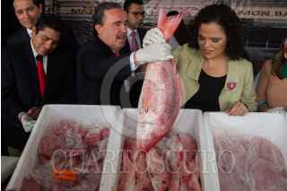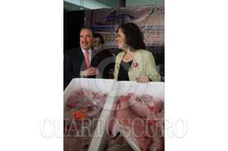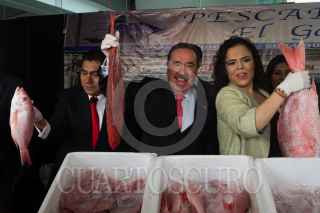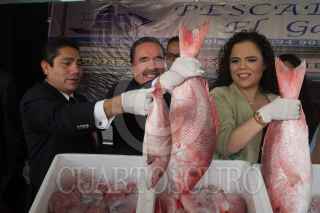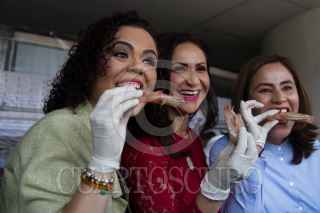 CIUDAD DE MÉXICO, 22FEBRERO2018.- Las senadoras panistas Mariana Gómez del Campo y Sonia Rocha Acosta, acompañadas de la perredista Karen Quiroga, prueban los camarones enteros durante la inauguración de la exposición gastronómica "Mercado la Nueva Viga", en las instalaciones del Senado, FOTO: MOISÉS PABLO /CUARTOSCURO.COM