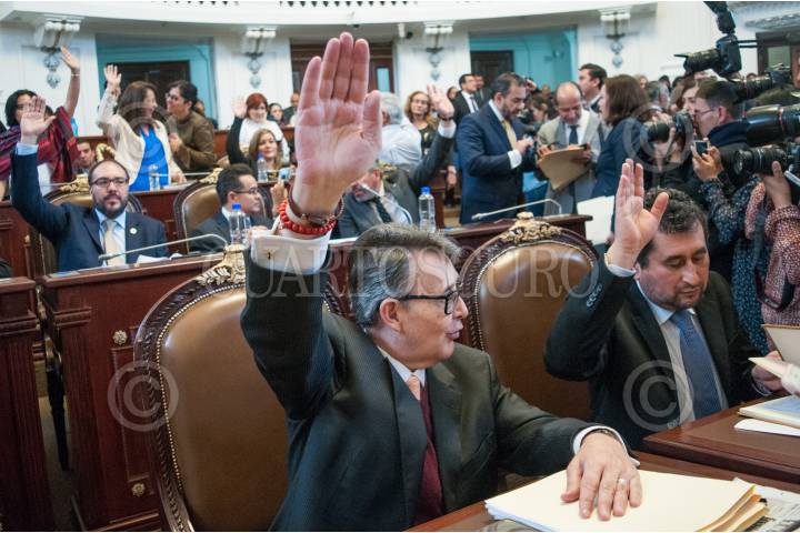 CIUDAD DE MÉXICO, 22FEBRERO2018 - Los diputados locales perredistas Mauricio Toledo, Leonel Luna y Raúl Flores, durante la sesión extraordinaria en la Asamblea Legislativa del Distrito Federal, en la cual se aprobó en lo general las reformas al presupuesto de egresos de la Ciudad de México y la Ley de Gasto Eficiente, que envió el jefe de Gobierno, Miguel Ángel Mancera, para que la Secretaría de Finanzas se haga cargo de el fondo de reconstrucción. FOTO: DIEGO SIMÓN SÁNCHEZ /CUARTOSCURO.COM