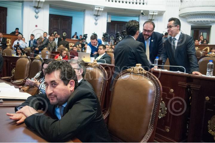 CIUDAD DE MÉXICO, 22FEBRERO2018 - Los diputados locales perredistas Mauricio Toledo, Leonel Luna y Raúl Flores, durante la sesión extraordinaria en la Asamblea Legislativa del Distrito Federal, en la cual se aprobó en lo general las reformas al presupuesto de egresos de la Ciudad de México y la Ley de Gasto Eficiente, que envió el jefe de Gobierno, Miguel Ángel Mancera, para que la Secretaría de Finanzas se haga cargo de el fondo de reconstrucción. FOTO: DIEGO SIMÓN SÁNCHEZ /CUARTOSCURO.COM