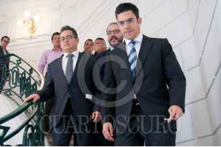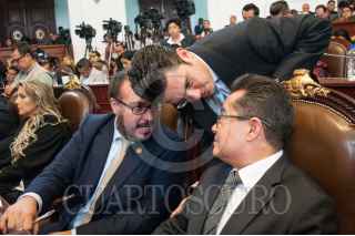 CIUDAD DE MÉXICO, 22FEBRERO2018 - Los diputados locales perredistas Mauricio Toledo, Leonel Luna y Raúl Flores, durante la sesión extraordinaria en la Asamblea Legislativa del Distrito Federal, en la cual se aprobó en lo general las reformas al presupuesto de egresos de la Ciudad de México y la Ley de Gasto Eficiente, que envió el jefe de Gobierno, Miguel Ángel Mancera, para que la Secretaría de Finanzas se haga cargo de el fondo de reconstrucción. FOTO: DIEGO SIMÓN SÁNCHEZ /CUARTOSCURO.COM