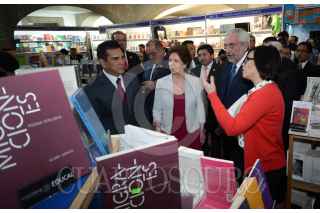CIUDAD DE MÉXICO, 22FEBRERO2018.- Alejandro Moreno, gobernador de Campeche, María Cristina García Cepeda, secretaria de Cultura, y Enrique Graue, rector de la UNAM, durante un recorrido por la recien inaugurada Feria Internacional del Libro de Palacio de Minería. FOTO: UNAM /CUARTOSCURO.COM