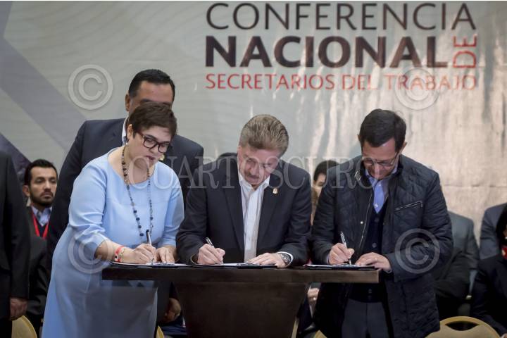 ROSARITO, BAJA CALIFORNIA, 22FEBRERO2018.- El Secretario del Trabajo y Previsión Social, Roberto Campa Cifrián, durante la firma del Acuerdo de Ejecución de Movilidad con el propósito de proteger los derechos laborales de los trabajadores agrícolas jornaleros de Baja California, esto dentro de 1ª Sesión Ordinaria de la Conferencia Nacional de Secretarios del Trabajo 2018, CONASETRA, realizado en el Centro de convenciones de la ciudad. FOTO: CUARTOSCURO.COM