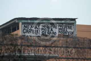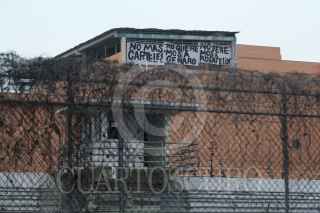 MONTERREY, NUEVO LEÓN, 23FEBRERO2018.- Presos del Penal del Topo Chico protestaron con mantas arriba de las azoteas en contra de mandos de seguridad y autoridades del CERESO. FOTO: GABRIELA PÉREZ MONTIEL /CUARTOSCURO.COM