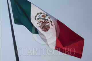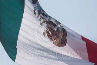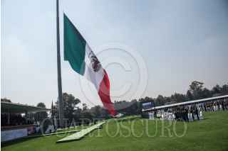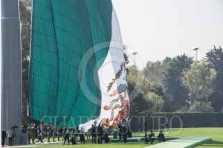 CIUDAD DE MÉXICO, 24FEBRERO2018.- Durante la ceremonia conmemorativa del Día de la Bandera en Campo Marte, el símbolo patrio fue izado con el escudo al revés. La bandera monumental fue bajada y retirada mientras continuaba la realización del evento. FOTO: MARIO JASSO /CUARTOSCURO.COM