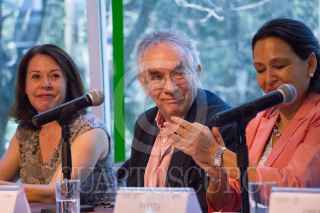 CIUDAD DE MÉXICO, 24FEBRERO2018.- Gabriel Carrington, Sylvia Navarrete y Lidya Camacho, encabezaron la conferencia de prensa del anuncio de la exposición "Cuentos Mágicos de Leonora Carrington, que se presentará en el museo de Arte Moderno de la ciudad. FOTO: VICTORIA VALTIERRA /CUARTOSCURO.COM