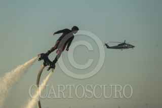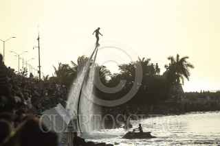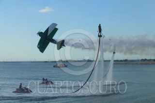 CAMPECHE, CAMPECHE, 24FEBRERO2018.- Cientos de campechanos se reunieron en el malecón y dársena del muelle de abrigo de esta ciudad, para presenciar el espectáculo aéreo "Air Show" realizado por pilotos acrobáticos provenientes de Rusia, Estados Unidos y Canadá, además de paracaidismo de precisión y flyboards. FOTO: MARTÍN ZETINA /CUARTOSCURO.COM
