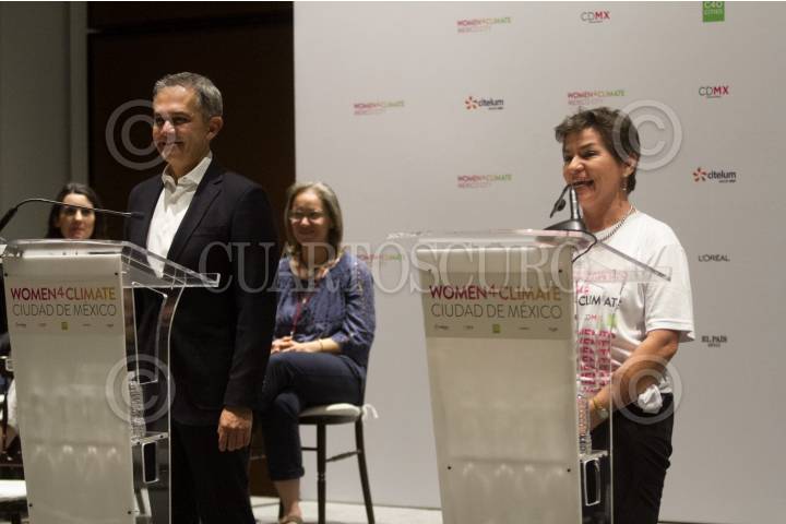 CIUDAD DE MÉXICO, 25FEBRERO2018.- Tanya Müller, secretaria del Medio Ambiente; Miguel Ángel Mancera, Jefe de Gobierno, y Christiana Figueres, líder mundial sobre Cambio Climático, presentaron el #Women4Climate, un encuentro a nivel mundial que busca promover ideas y acciones de medidas concretas para mejorar el medio ambiente a nivel local. FOTO: MOISÉS PABLO /CUARTOSCURO.COM