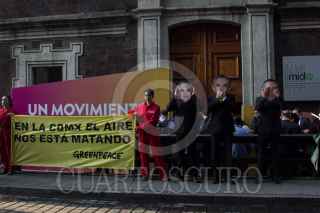 CIUDAD DE MÉXICO, 26FEBRERO2018.- Ciudadanos se unieron a la protesta de Greenpeace para exigir al jefe de gobierno, Miguel Ángel Mancera, la detención de las obras del Metrobús Línea 7 en calzada de los Misterios. FOTO: GALO CAÑAS /CUARTOSCURO.COM