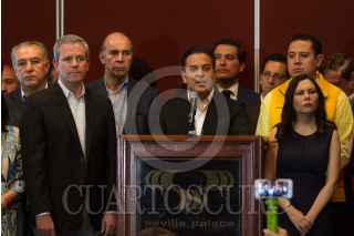 CIUDAD DE MÉXICO, 26FEBRERO2018.- Damián Zepeda, dirigente del PAN, junto con senadores del PAN y algunos miembros del PRD y Movimiento Ciudadano, ofrecieron una conferencia de prensa para denunciar supuestas irregularidades durante la gestión de José Antonio Meade, candidato del PRI a la Presidencia de la República, durante su desempeño como secretario de Estado. FOTO: MOISÉS PABLO /CUARTOSCURO.COM