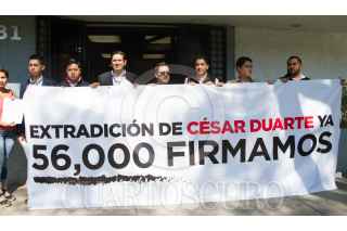 CIUDAD DE MÉXICO, 26FEBRERO2018.- Sergio Leyva y Fernando Belauzarán, entregaron 56,000 firmas ante la PGR pidiendo la extradición del ex gobernador de Chihuahua, César Duarte. FOTO: VICTORIA VALTIERRA /CUARTOSCURO.COM