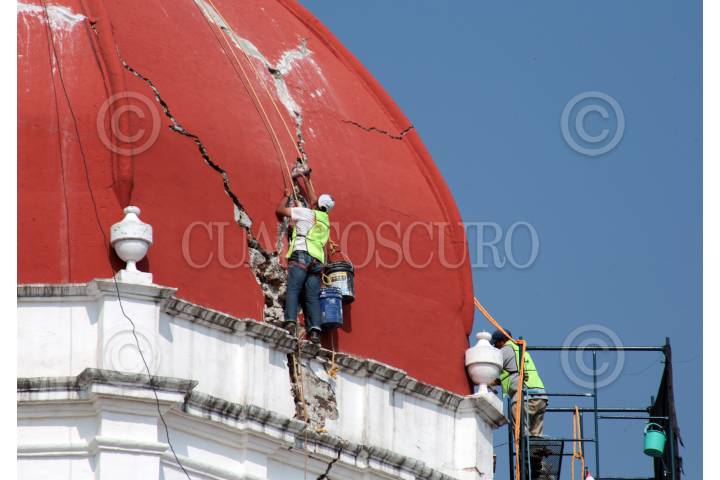CUERNAVACA, MORELOS, 27FEBRERO2018.- La cúpula de la Parroquia de Nuestra Señora de Guadalupe continúa siendo reparada tras sufrir daño por el sismo del pasado 19 de septiembre. FOTO: MARGARITO PÉREZ RETANA /CUARTOSCURO.COM