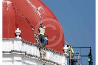 CUERNAVACA, MORELOS, 27FEBRERO2018.- La cúpula de la Parroquia de Nuestra Señora de Guadalupe continúa siendo reparada tras sufrir daño por el sismo del pasado 19 de septiembre. FOTO: MARGARITO PÉREZ RETANA /CUARTOSCURO.COM