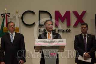 CIUDAD DE MÉXICO, 27FEBRERO2018.- Ángel Mancera, jefe de gobierno de la Ciudad de México, y José Ramón Amieva, secretario de gobierno de la capital, durante su mensaje matutino a medios. Donde informó acerca de las afectaciones sufridas el día de ayer por las lluvias y granizadas en distintas delegaciones, de igual modo destacó los trabajos en la red de aguas de las delegaciones Iztapalapa y Tláhuac tras los sismos de septiembre del año pasado. FOTO: GALO CAÑAS /CUARTOSCURO.COM