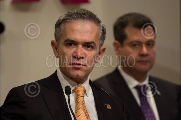 CIUDAD DE MÉXICO, 27FEBRERO2018.- Ángel Mancera, jefe de gobierno de la Ciudad de México, y José Ramón Amieva, secretario de gobierno de la capital, durante su mensaje matutino a medios. Donde informó acerca de las afectaciones sufridas el día de ayer por las lluvias y granizadas en distintas delegaciones, de igual modo destacó los trabajos en la red de aguas de las delegaciones Iztapalapa y Tláhuac tras los sismos de septiembre del año pasado. FOTO: GALO CAÑAS /CUARTOSCURO.COM