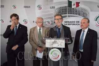 CIUDAD DE MÉXICO, 27FEBRERO2018.- Juan Carlos Romero Hicks, y los senadores Francisco de Paula Búrquez Valenzuela, Víctor Hermosillo y Celada, María Marcela Torres Peimbert, y Ernesto Ruffo Appel, en conferencia de prensa, hicieron un llamado a la PGR para se generé un informe sobre los funcionaros públicos que participaron en actos de corrupción en el caso Odebrecht. FOTO: MARIO JASSO /CUARTOSCURO.COM