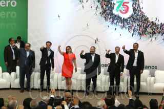 CIUDAD DE MÉXICO, 28FEBRERO2018.- José Antonio Meade Kuribreña, candidato del PRI a la presidencia de la república, acompañado de Arturo Zamora, secretario general de la Conferderacion Nacional de Organizaciones Populares, Mikel Arriola, candidato del PRI a la gubernatura de la Ciudad de Mexico, Enrique Ochoa, presidente del CEN del PRI y ex presientes del partido, asistieron al 75 aniversario de la CNOP. FOTO: SAÚL LÓPEZ /CUARTOSCURO.COM
