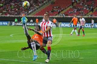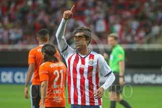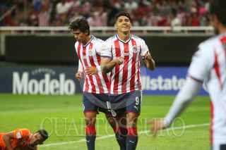 ZAPOPAN, JALISCO, 28FEBRERO2018.- Las Chivas de Guadalajara (México) se enfrentan al Cibao (Republica Dominicana) en el Estadio Akron, en partido correspondiente a los Octavos de Final de vuelta de la Liga de Campeones de la Concacaf. En la imagen Alan Pulido jugador de Chivas celebra su anotación durante el juego y en donde el marcador fue de 5-0. FOTO: FERNANDO CARRANZA GARCIA / CUARTOSCURO.COM