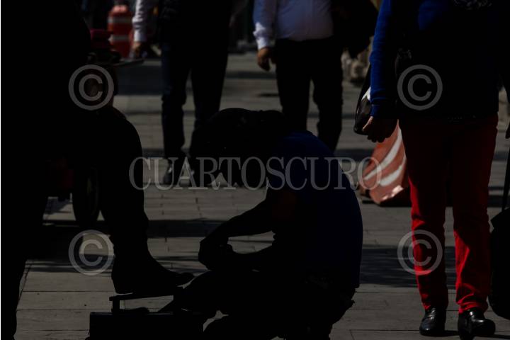 CIUDAD DE MÉXICO, 01MARZO2018.- Quizás para la venta o para botarlos, un hombre carga lámina de aluminio en contra sentido de los carros del circuito Zócalo. FOTO: GALO CAÑAS /CUARTOSCURO.COM