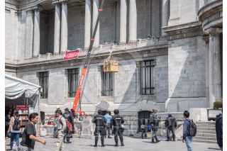 CIUDAD DE MÉXICO, 01MARZO2018.- Elementos de seguridad privada resguardaron y trasladaron una caja con contenido artístico al Palacio de Bellas Artes. FOTO: MARIO JASSO /CUARTOSCURO.COM