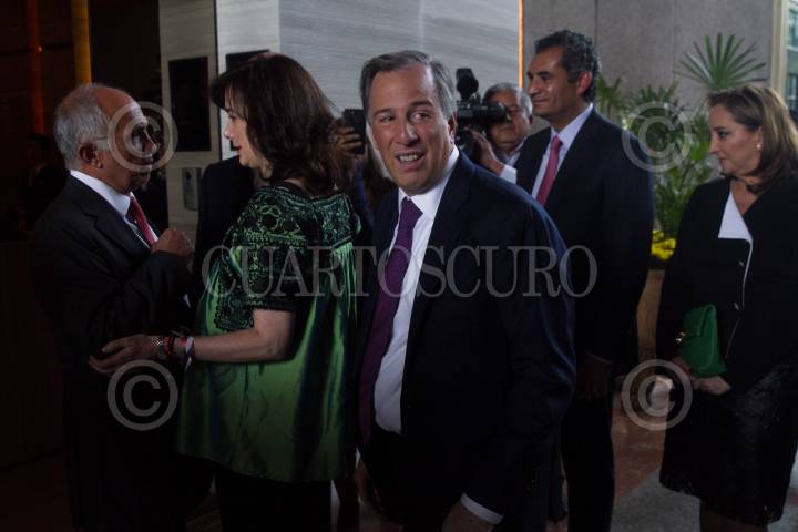 CIUDAD DE MÉXICO, 01MARZO2018.- José Antonio Meade, candidato del PRI, acompañado de su esposa Juana Cuevas comió esta tarde con empresarios en el Club de Industriales. FOTO: MOISÉS PABLO /CUARTOSCURO.COM