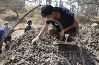 PUEBLA, PUEBLA, 01MARZO2018.- Se realizó el hallazgo de restos óseos prehispánicos en el cerro de Amalucan, por lo que integrante del colectivo Matlateilt Alseseca y vecinos de la zona exhortan al gobierno del estado a detener las obras del parque de Amalucan. FOTO: HILDA RÍOS / CUARTOSCURO.COM