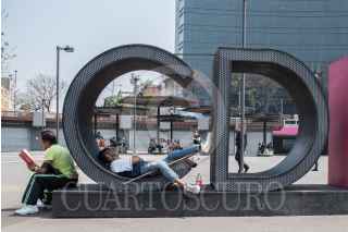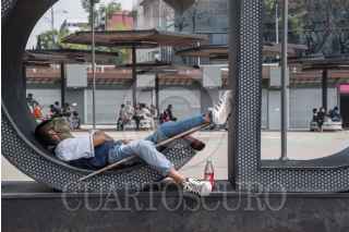 CIUDAD DE MÉXICO, 02MARZO2018.- Un joven toma una ligera siesta, en una escultura ubicada en la Glorieta de los Insurgentes. FOTO: MARIO JASSO /CUARTOSCURO.COM
