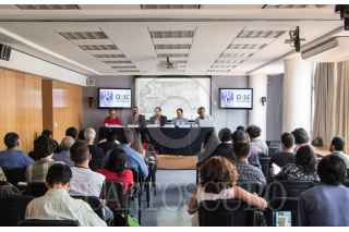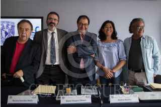 CIUDAD DE MÉXICO, 02MARZO2018.- Victor del Real, escritor y editor, Renato González Mello, investigador especialista en artes, Mario Vázquez Olivera, director del Centro de Investigación sobre América Latina y el Caribe (CIALC), Mónica Morales, investigadora especialista en fotoperiodismo y Pedro Valtierra, fotoperiodista y director de la Agencia y Editora Cuartoscuro, durante la presentación de la revista No. 148 en la CIALC de la Universidad Nacional Autónoma de México. FOTO: ADOLFO VLADIMIR /CUARTOSCURO.COM