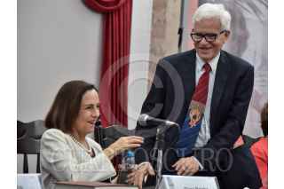 CIUDAD DE MÉXICO, 03MARZO2018.- El historiador mexicano Víctor Campa Mendoza, en compañia de la actriz Diana Bracho, presentó su libro titulado "El Cine Mexicano", como parte de las presentaciones de la 39 Feria Internacional del Libro (FIL) celebrada en el Palacio de Minería. FOTO: MARIO JASSO /CUARTOSCURO.COM