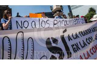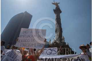 CIUDAD DE MÉXICO, 04MARZO2018.- Colonos de la delegación Cuauhtémoc se reunieron en el Ángel de la Independencia para manifestar su rechazo a los parquímetros y el aumento del tiempo en estos. Asimismo, desmintieron las palabras de Miguel Ángel Mancera Espinosa, jefe de gobierno, el cual aseguró que los vecinos de estas colonias estaban de acuerdo con la implementación de estas nuevas medidas de recaudación. FOTO: TERCERO DÍAZ /CUARTOSCURO.COM