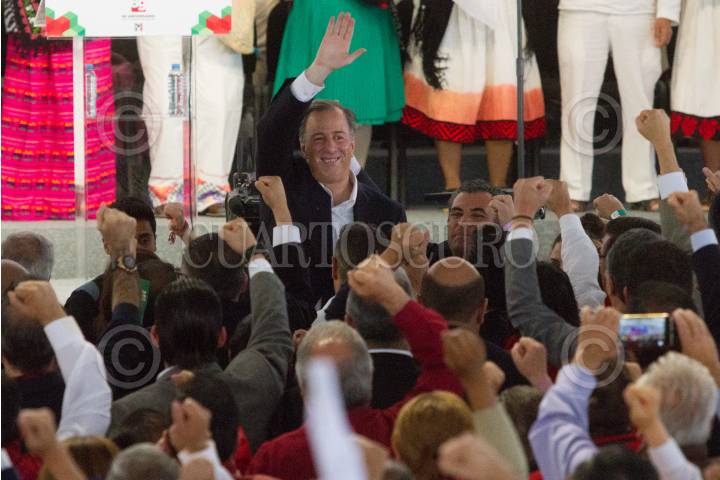CIUDAD DE MÉXICO, 04FEBRERO2018.- Emilio Gamboa Patrón, Miguel Ángel Osorio Chong, y Manlio Fabio Beltrones, al finalizar la ceremonia del 89 aniversario del Partido Revolucionario Institucional, realizado en el CEN del PRI. FOTO: CUARTOSCURO.COM